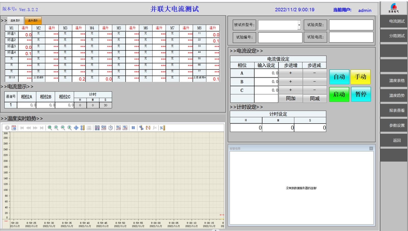 6)人性化界面,軟件界面友好,全中文操作界面,控制軟件具備數(shù)據(jù)記錄、并可將電流、溫度波形存儲(chǔ),數(shù)據(jù)管理、報(bào)表、打印等多種實(shí)用功能;參數(shù)設(shè)定全部在軟件中完成。更為直觀地分析電流與溫度關(guān)系值。使所有數(shù)據(jù)和測(cè)試分析結(jié)果一目了然。試驗(yàn)過(guò)程中,自動(dòng)跟蹤目標(biāo)電流,自動(dòng)穩(wěn)定輸出電流,自動(dòng)調(diào)節(jié)三相電流;試驗(yàn)完成后,自動(dòng)回到零位;自動(dòng)打印